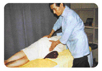 옆으로 누운 환자의 히프 외측을 눌러 주는 골반교정