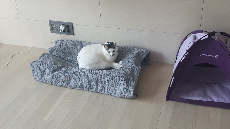 s사이즈를 잘 사용해서 m사이즈도 추가 구매했어요. 저희애는 푹신을 싫어해서 원래 커버의 뜬 부분을 싫어해요. 애가 좋아하는 이불로 커버 만들어줬어요. 그런데 끼는 거 좋아하는 고양이 특성 상 작은 s사이즈를 더 애용하긴해요.